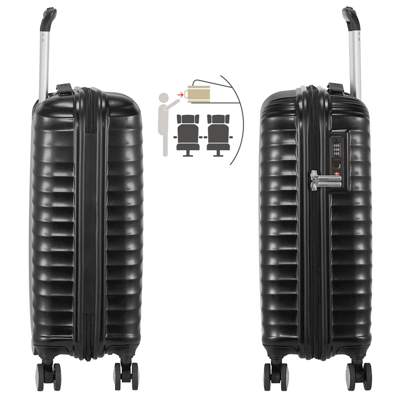 این چمدان دارای یک دسته در بالا در همه سایزها، یک دسته در کنار برای سایزهای متوسط و بزرگ و یک دسته در بالا با قابلیت تنظیم اندازه به صورت تلسکوپی برای همه سایزها می باشد.