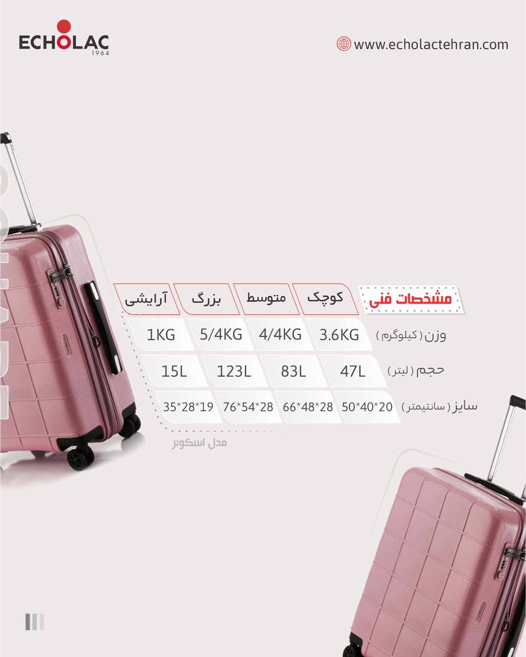 اگه طرفدار چمدانای محکم و ضدضربه و فناناپذیر هستین و میخواین چمدانتان یه عمر براتون کار کنه و همسفرتون باشه این مدل اسکوئر پرو اکولاک بهترین انتخاب برای شماست.