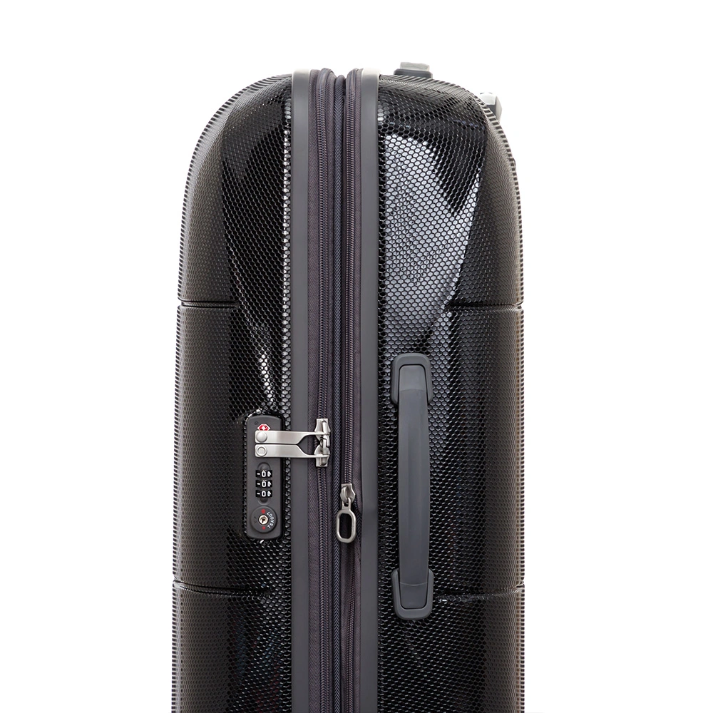 زیپ افزایش حجم دارد و درصورت لزوم تا بیست درصد به ظرفیت آن اضافه میگردد. زیپ دوبل و ضدسرقت از دیگر خصوصیات این چمدان میباشد.