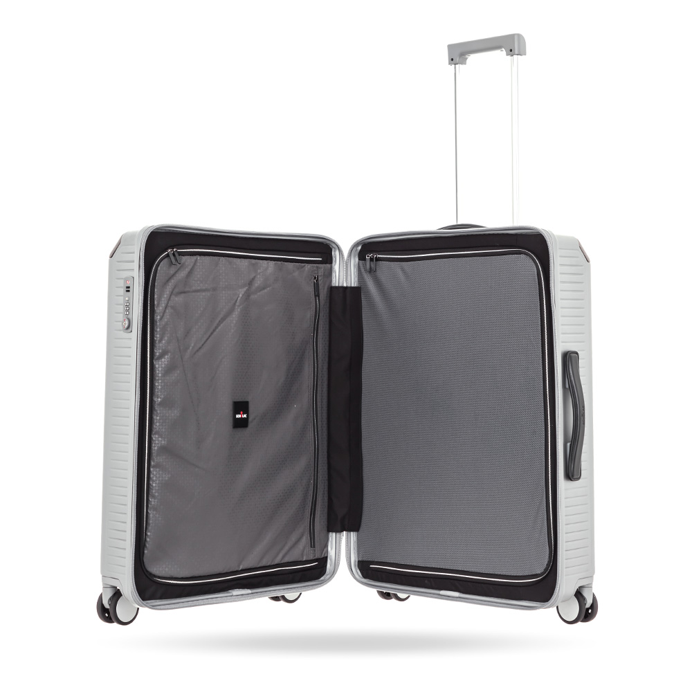 یه چمدان همه چیز تموم و کامل هست. یک چمدان شیک با رنگهای نقرهای و مشکی و خاکستری که بیشتر از همیشه میدرخشد.