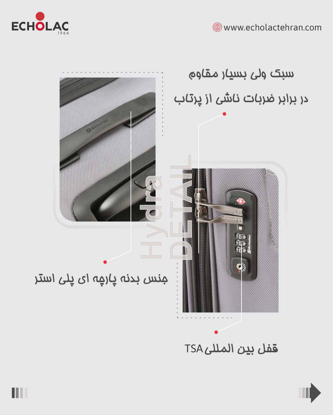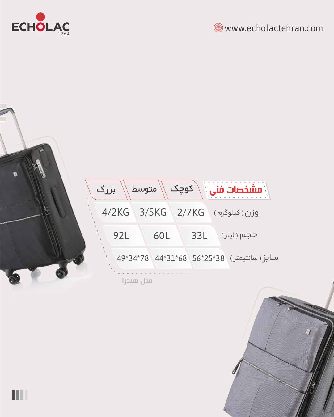 چمدان اکولاک مدل هیدرا سایز بزرگ در رنگ مشکی و طوسی در فروشگاه اکولاک درحال عرضه میباشد.