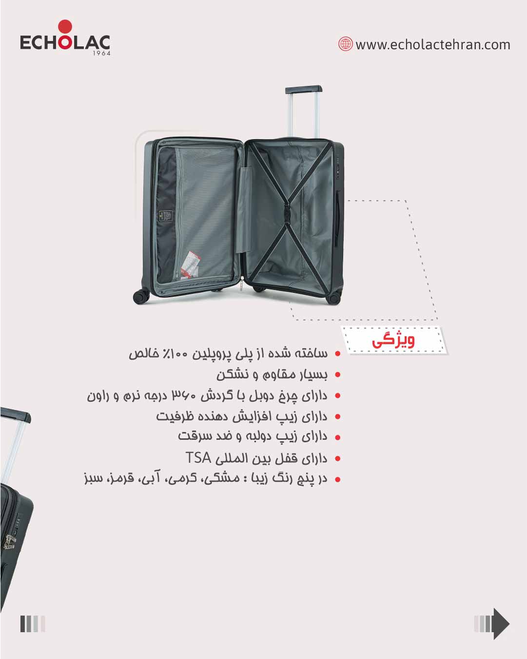 در واقع یکی از مهم ترین آپشن های انتخاب این چمدون نشکن بودن و استحکام بالای اون هستش که با خیال راحت میتونید باخیالی راحت با اون به سفر های طولانی مدت برید.