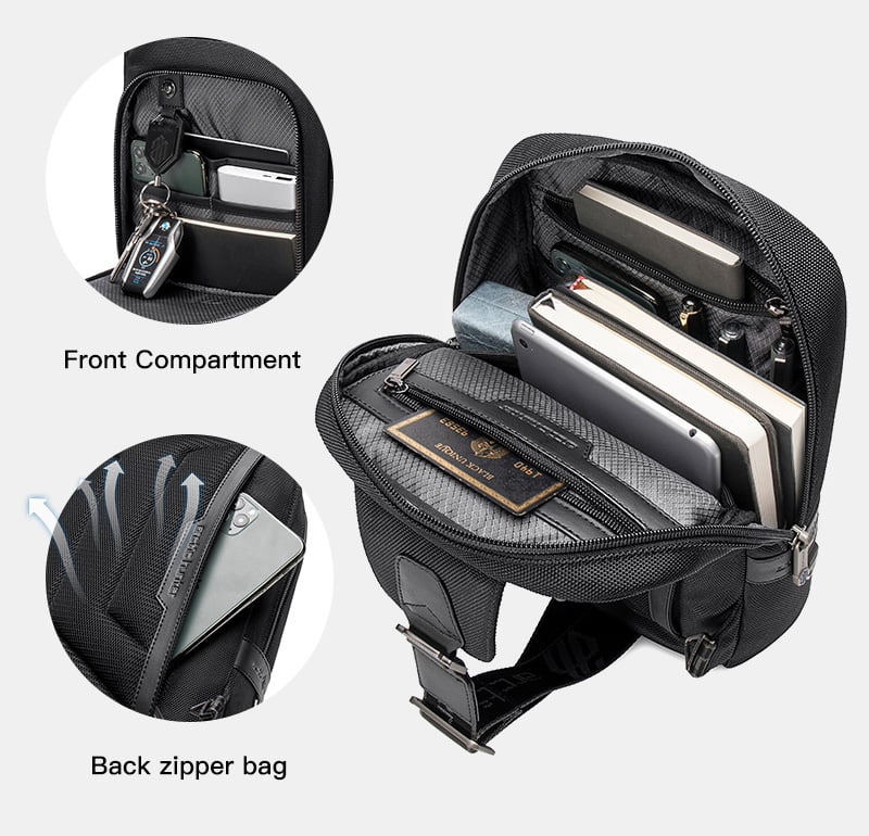 در محفظه اصلی این محصول می توان جیب های کوچک را مشاهده نمود. بخش های مختلف این کراس بادی برای نگهداری از پاور بانک، دفترچه، آیپد و لوازم دیگر تعبیه شده اند.