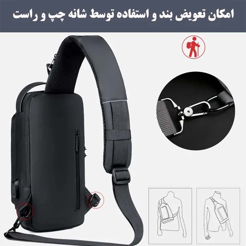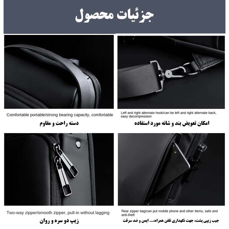 یک کیف از نوع کراس بادی با طراحی حرفه ای، ضد ضربه است و دارای پد اضافی برای محفظه از تبلت می باشد، بندهای قابل تنظیم دارد که طول بند ها کوتاه و بلند می شود.