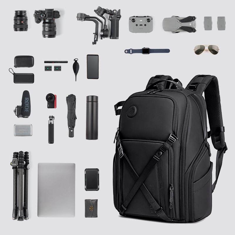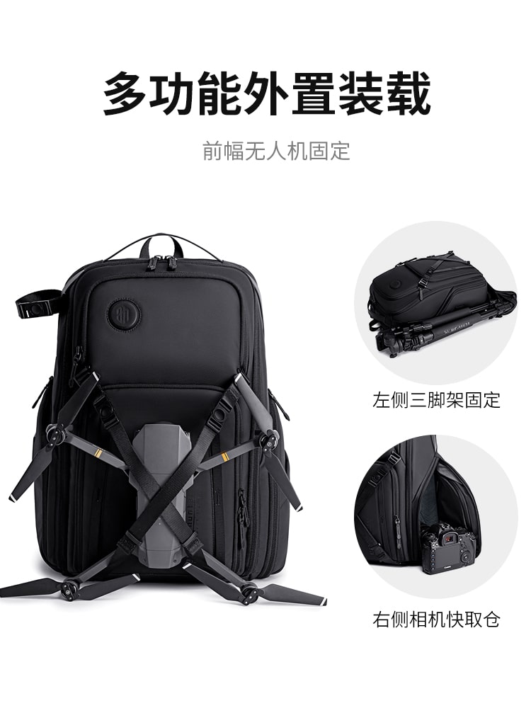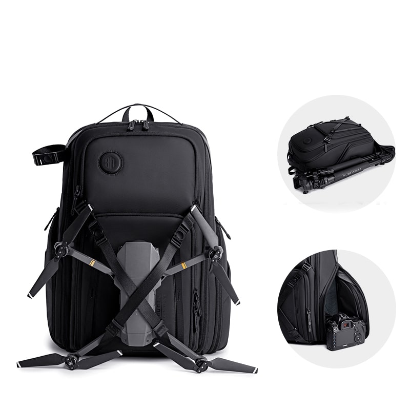 این کوله پشتی را میتوان 180 درجه باز کرد، دارای یک جیب کناری دوربین با دسترسی آسان است، همچنین سه پایه دوربین و پهباد فیلم برداری در قسمت خارجی کوله جای می گیرد.