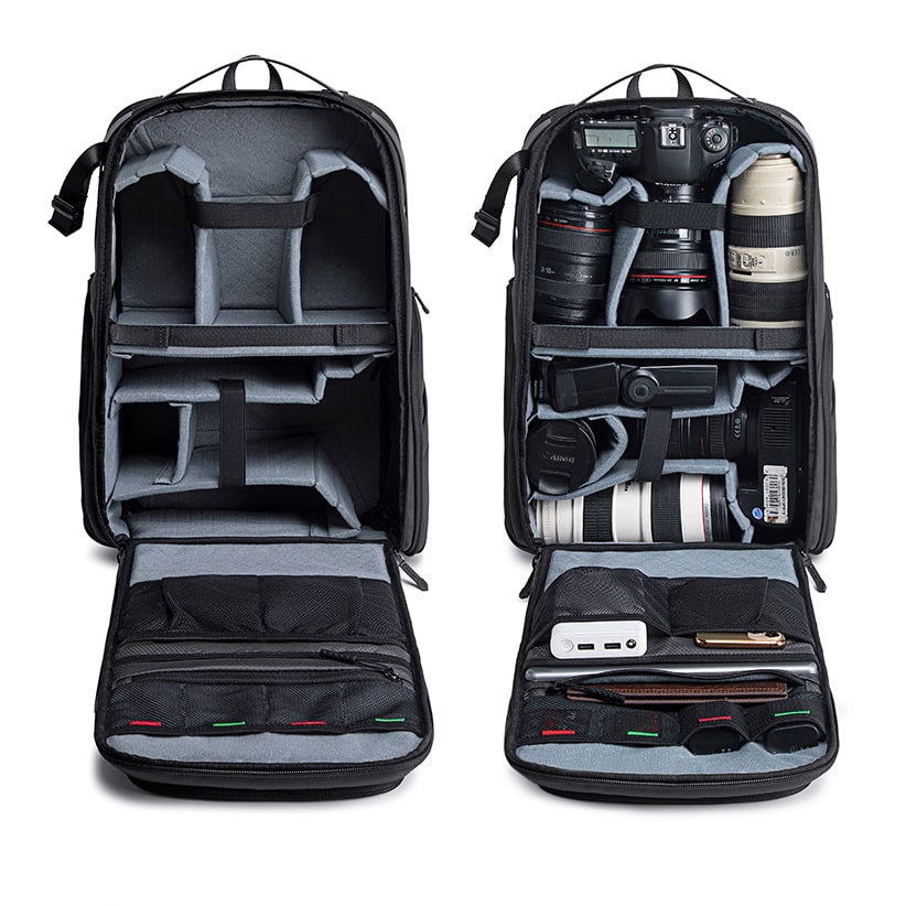 یک کوله برای حمل دوربین است، کوله ای حرفه ای که به راحتی می تواند 2 دوربین بزرگ و 6 لنز را در خود جای دهد. داخل کیف پارتیشن بندی شده استو به راحتی همه لوازم جانبی یک عکاس را در خود جای می دهد.