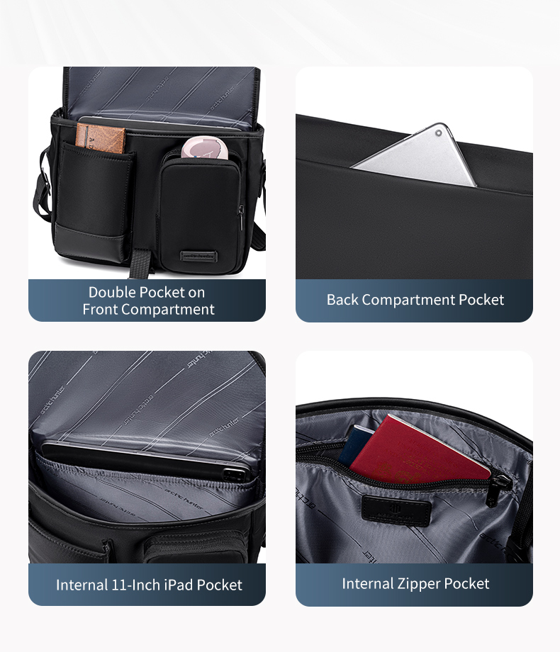 طراحی چندقسمتی حرفهای این مشکل شما را حل میکند. این کیف شانهای دارای چهار جیب جداگانه است که شامل ۳ محفظه زیپدار و یک جیب جلویی میشود، که فضای کافی برای نگهداری وسایل روزمره شما فراهم میکند.