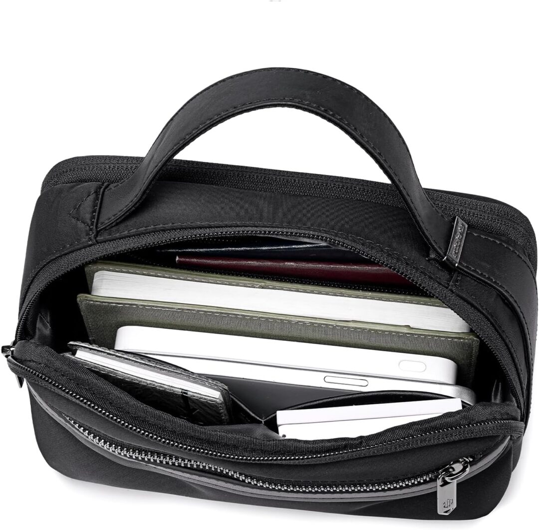 - طراحی چند جیبی:کیف دستی شامل چندین محفظه برای سازماندهی کارآمد لوازم بهداشتی، گذرنامه، پول نقد و لوازم آرایشی است.